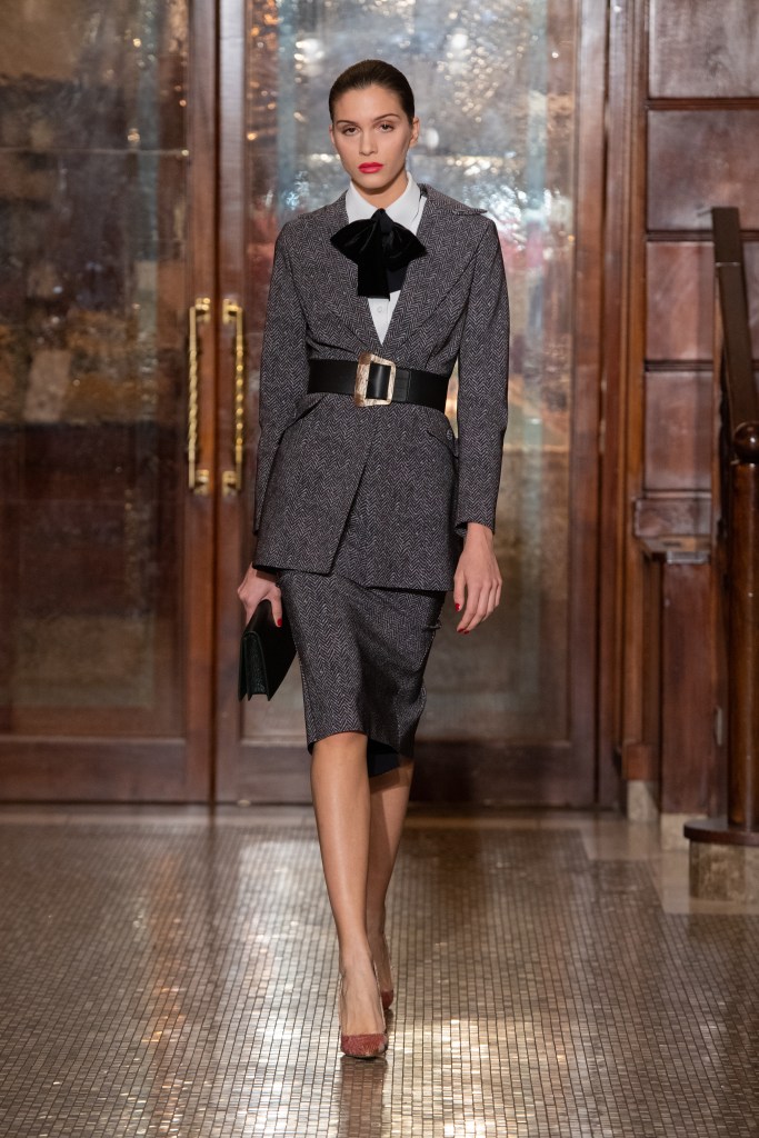 Sul fronte degli accessori, la proposta di borse, realizzate in morbida pelle stampata con motivi coccodrillo e serpente, ha aggiunto un tocco prezioso alla collezione . L’elegante ma funzionale borsa Nicolle, con l’iconico manico a forma di triangolo, è stata presentata accanto alla mini box bag Sofia e ad una selezione di sofisticate pochette.
