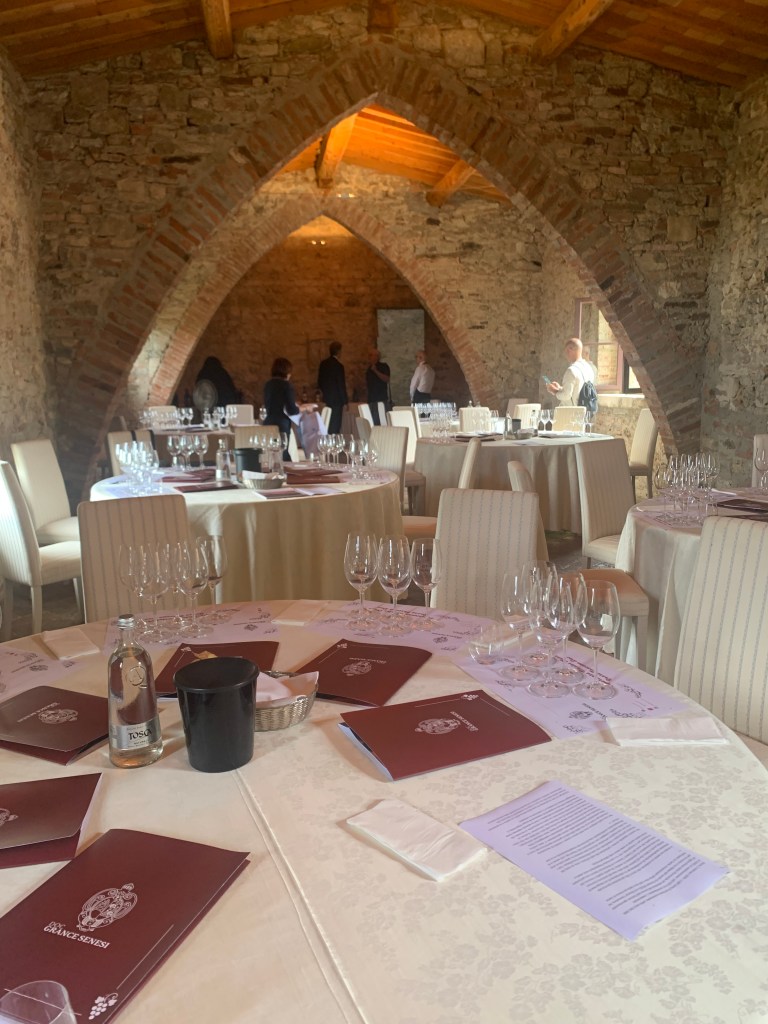 L’evento si è concluso con una cena di Gala nelle sontuose sale del Castello di Modanella ad accoglierci Loris Mozzini, uno dei migliori direttori di sala che ci ha illustrato la raffinata cena “L’Arte di Mangiar Bene” associata ai vini della Doc Grance Senesi.