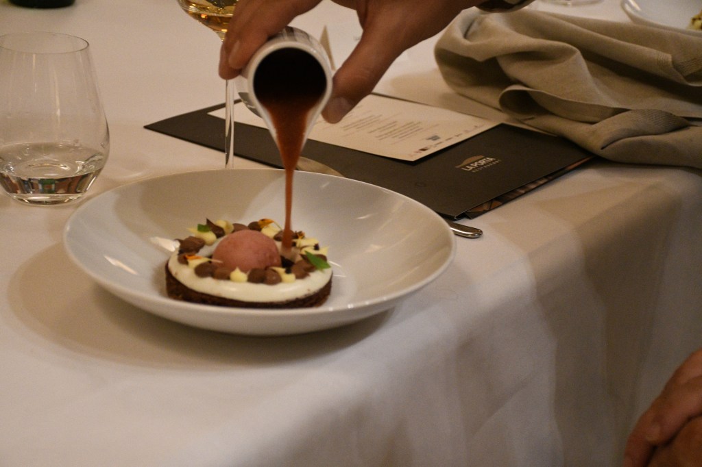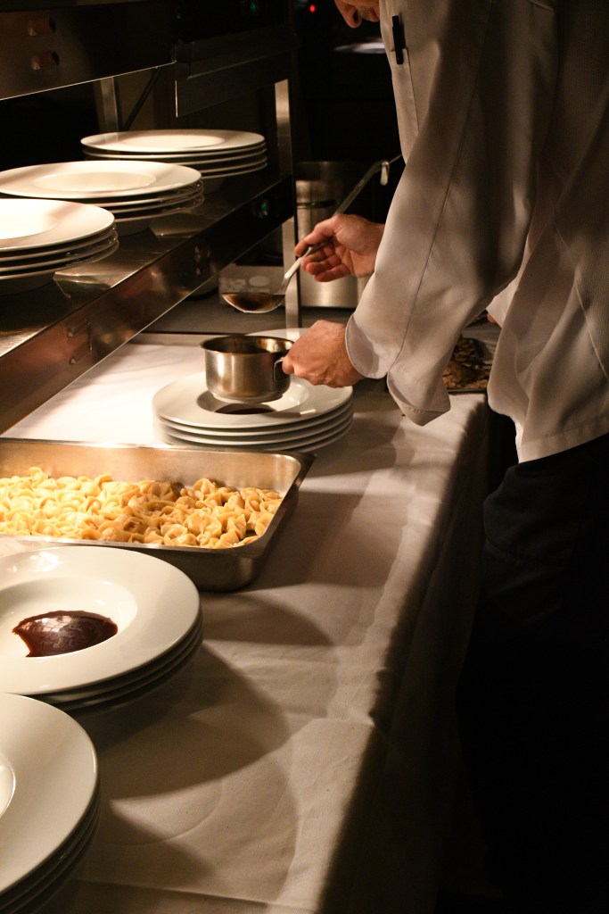 Ai fornelli del Ristorante La Porta si sono esibiti a quattro mani lo chef Massimiliano Mascia, due stelle Michelin, proveniente dal ristorante San Domenico di Imola, lo chef Roberto Valbuzzi, del ristorante Crotto Valtellina di Malnate (Varese) e lo chef Pasquale D’Aniello del Ristorante La Porta.
