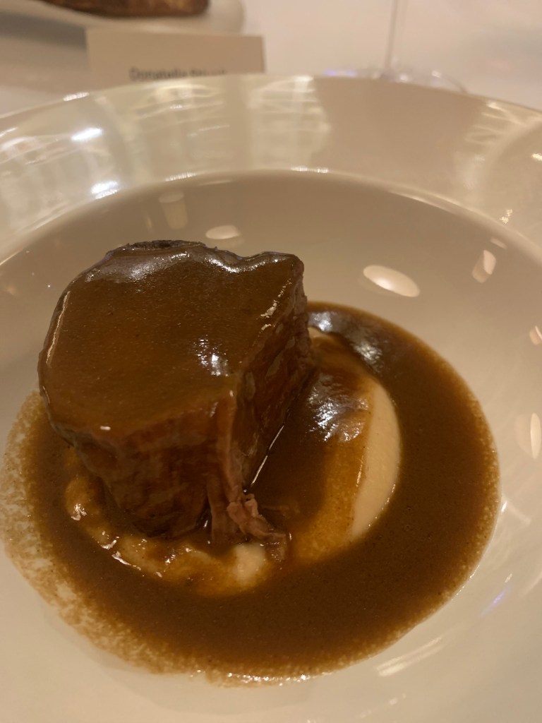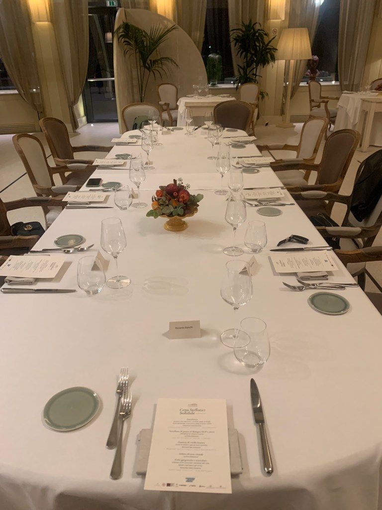 La cena è stata preceduta da un aperitivo in terazza nell’apposita area riservata in un ambiente esclusivo accompagnato da finger food e Sorbara rosé metodo classico Cantina della Volta.