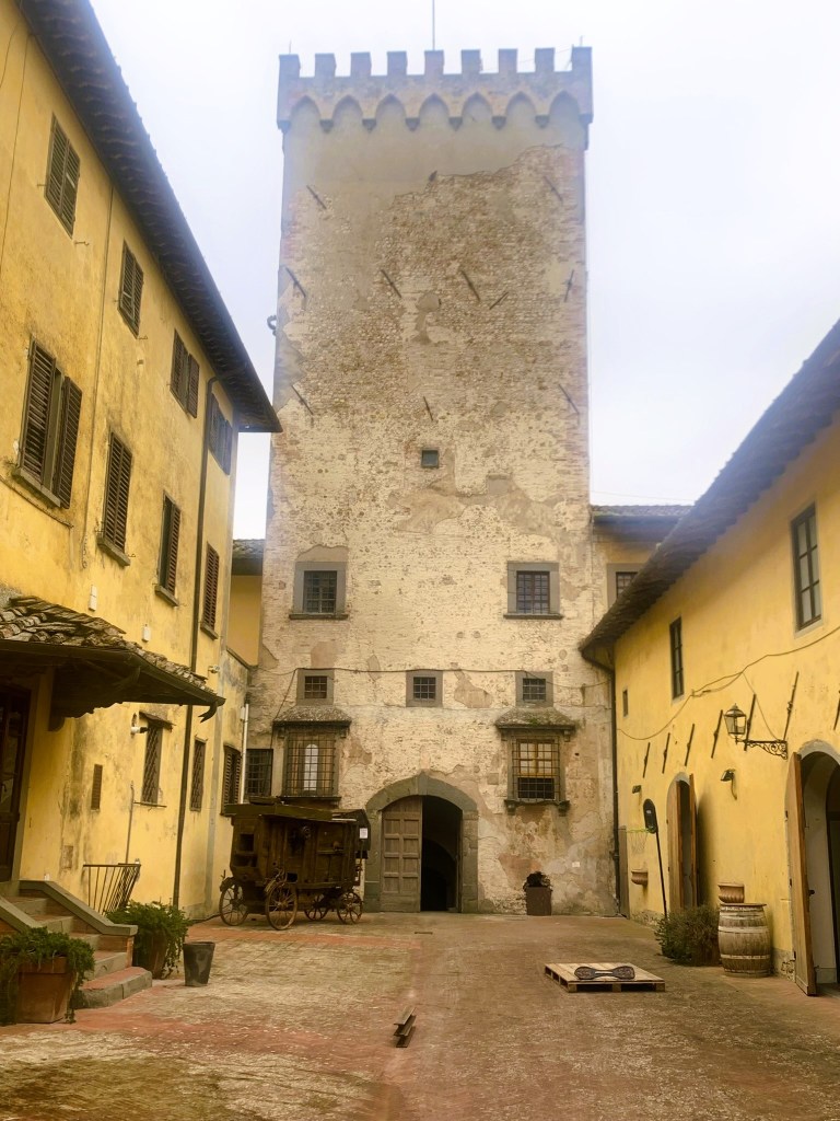 Il Castello nacque come presidio strategico della Val di Pesa, per difendere il confine tra Siena e Firenze. L’edificio, con la tipica torre fortilizia, risale al XIII secolo, grazie all’opera dell’antica famiglia fiorentina di origine pistoiese “Del Corno”.