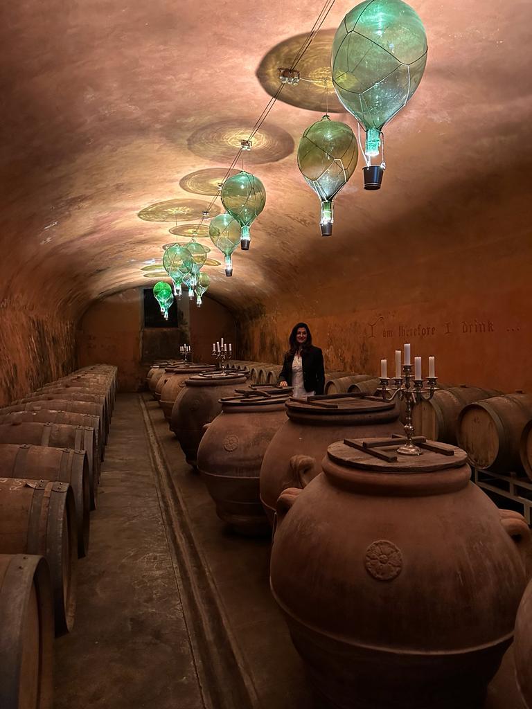 Ho avuto il piacere di essere stata accompagnata nella visita dalla Contessa Maria Giulia Frova in persona, iniziando dalla Tenuta Storica, dove vengono conservati reperti dell’epoca, cioè arredi e macchinari di un tempo antico, che fanno rivivere la storicità del luogo, per poi terminare con la splendida barricaia, luogo di grande fascino.