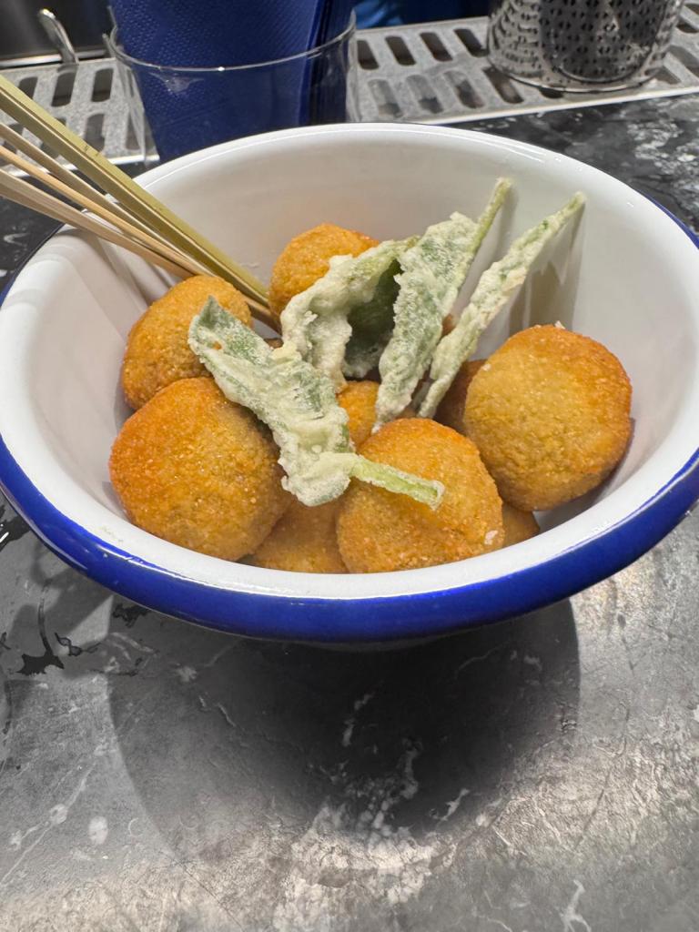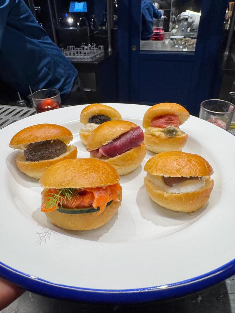 La parte food offre sia piccoli piatti da condividere per l’aperitivo (come ad esempio chips di patate rosse mugellane, olive ascolane, polpo con crema di peperoni, baccalà fritto con salsa piccante, rotolini di angus affumicato), sia per la cena, come tartare, grandi toast con a base un pan brioche realizzato quotidianamente da un forno artigianale e quindi piastrato sul momento, duchesse variamente farcite.
