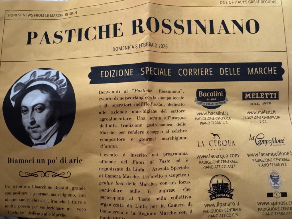 E’ stata una serata in cui le Marche si sono raccontate attraverso l’arte, il gusto e la convivialità, dimostrando come la cultura enogastronomica possa diventare spettacolo e racconto identitario. Un tributo a Rossini che, tra pentagramma e piatti, ha confermato quanto musica e cucina parlino, da sempre, la stessa lingua.