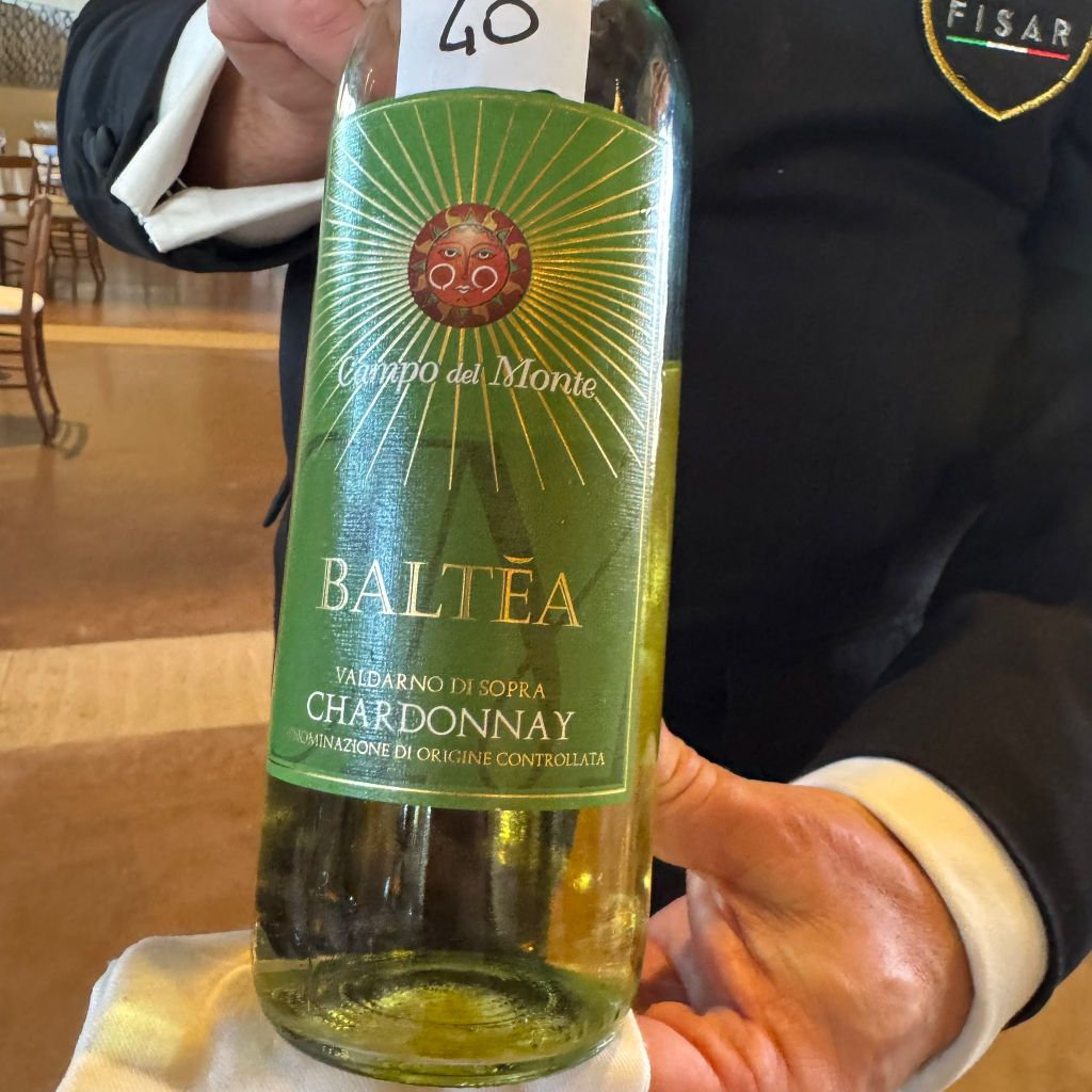 – Campo del Monte – Valdarno di sopra doc Baltea Chardonnay Doc 2024– fermentazione barriques affinamento in acciaio. Biologico. giallo paglierino chiaro luminoso; al naso note di mela golden ed erbe aromatiche. Gusto fresco sapido abbastanza persistente.