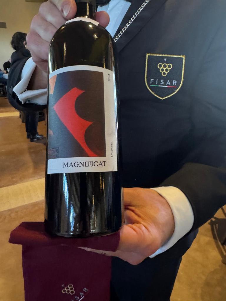 – Cantina Le Pietre Toscana Igt – Magnificat Cabernet Sauvignon – 2024, fermentazione in acciaio e affinamento in barriques– biologico in conversione. Colore rosso rubino luminoso; al naso note di frutti di bosco scuri ribes nero, mroa e sentori leggermente terrosi, leggeri accenni balsamici mentolati. Al gusto pieno e di corpo fresco e tannico.
