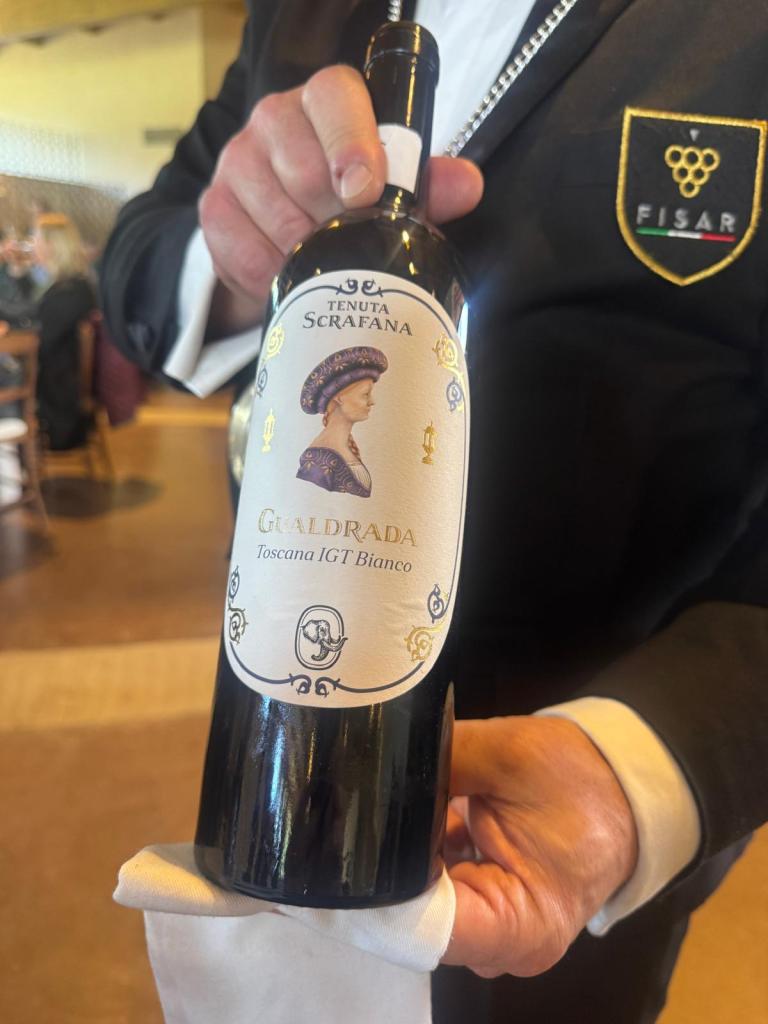 – Tenuta Scrafana – Toscana IGT bianco- fermentazione acciaio affinamento anfora, barriques rovere francese e acacia Gualdrada Trebbiano – 2022: Colore dorato luminoso. Al naso leggermente chiuso, note di cera, acacia, nocciola. Il Sorso è sapido abbastanza persistente con finale amarognolo.
