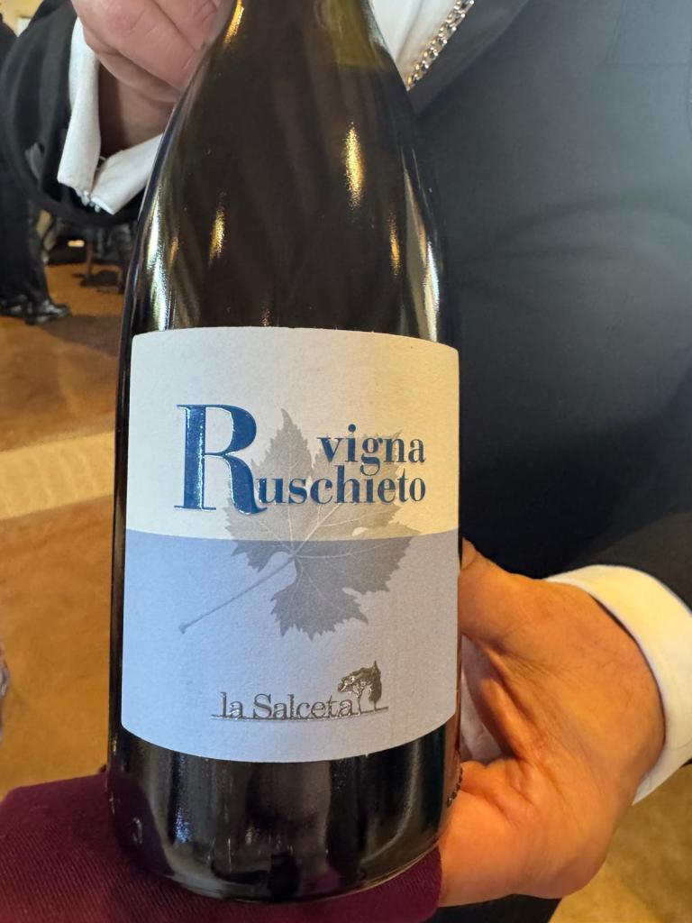– La Salceta – Valdarno di Sopra Doc Sangiovese – Vigna Ruschieto – 2022; fermentazione e affinamento in acciaio.Colore rosso rubino intenso. Al naso ciliegie marasca, melograno, arancia rossa. Sorso armonico con finale sapido.