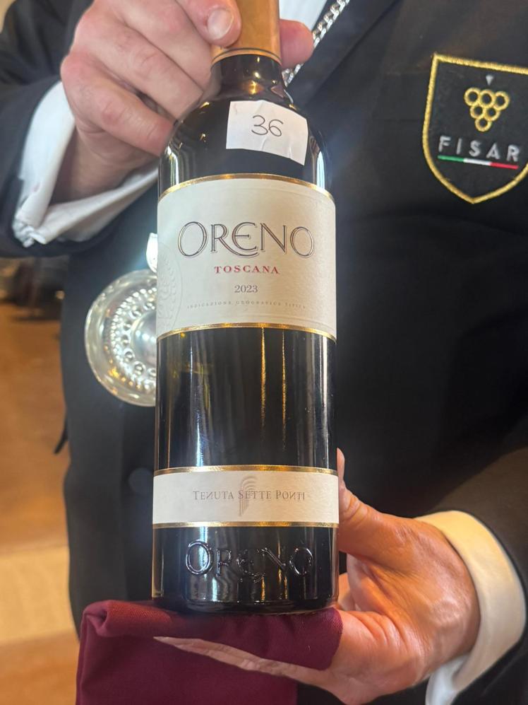 – Tenuta Sette Ponti – Toscana Igt rosso – Oreno 2023 (merlot, cabernet sauvignon, cabeRnet franc, petit verdot) fermentazione in acciaio affinamento in barriques. Colore rosso rubino riflessi granato; al naso ricche note di mora, mirtilli, gelso. Al gusto è di corpo fruttato con tannini ben integrati con un finale ampio.